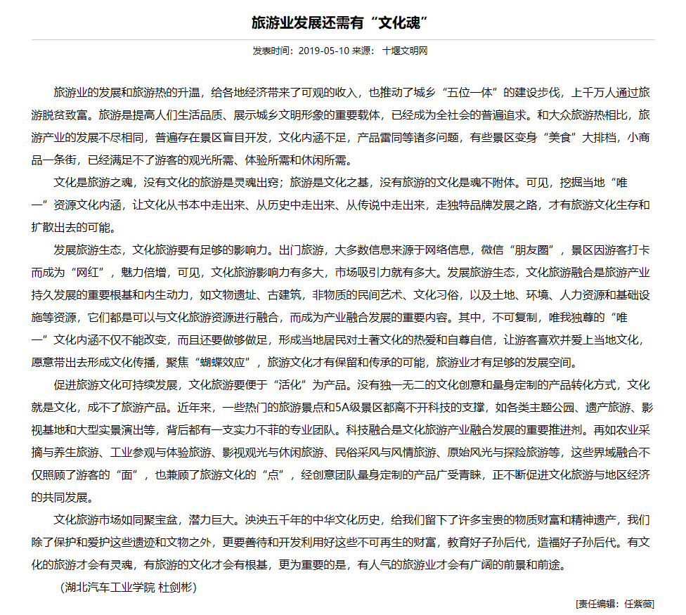 【十堰文明网】旅游业发展还需有“文化魂”
