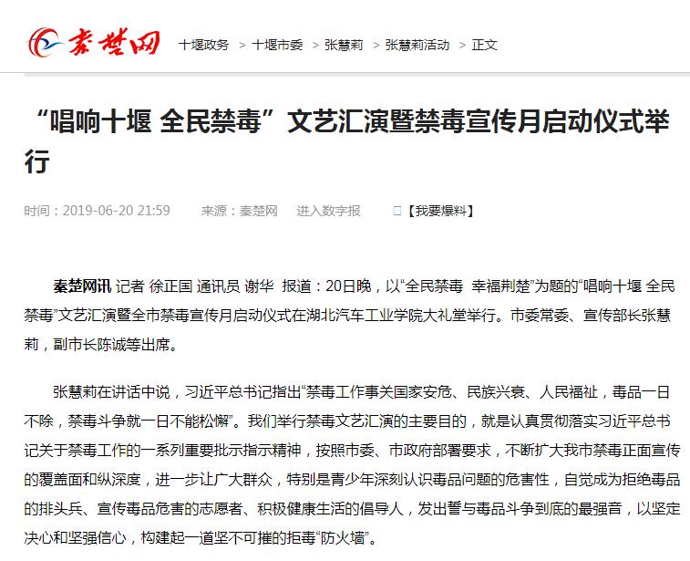 【秦楚网】“唱响十堰 全民禁毒”文艺汇演暨禁毒宣传月启动仪式在汽院举行