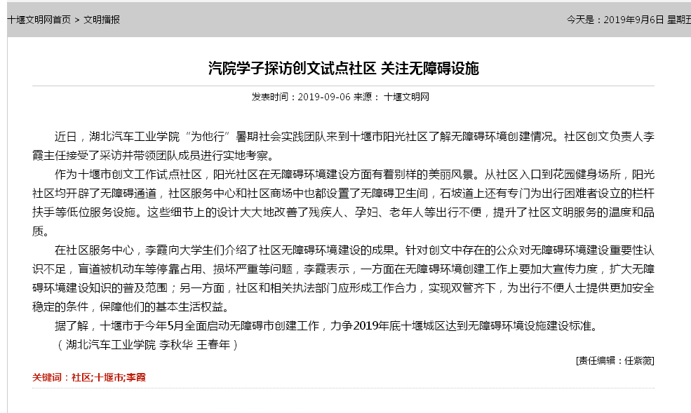 【十堰文明网】汽院学子探访创文试点社区关注无障碍设施-国产精品永久久久久久久久久|91精品无码国产在线观看一区|久久人爽爽人爽爽ąV无码自慰|最新无码国模国产在线|2020最新无码国产在线观看