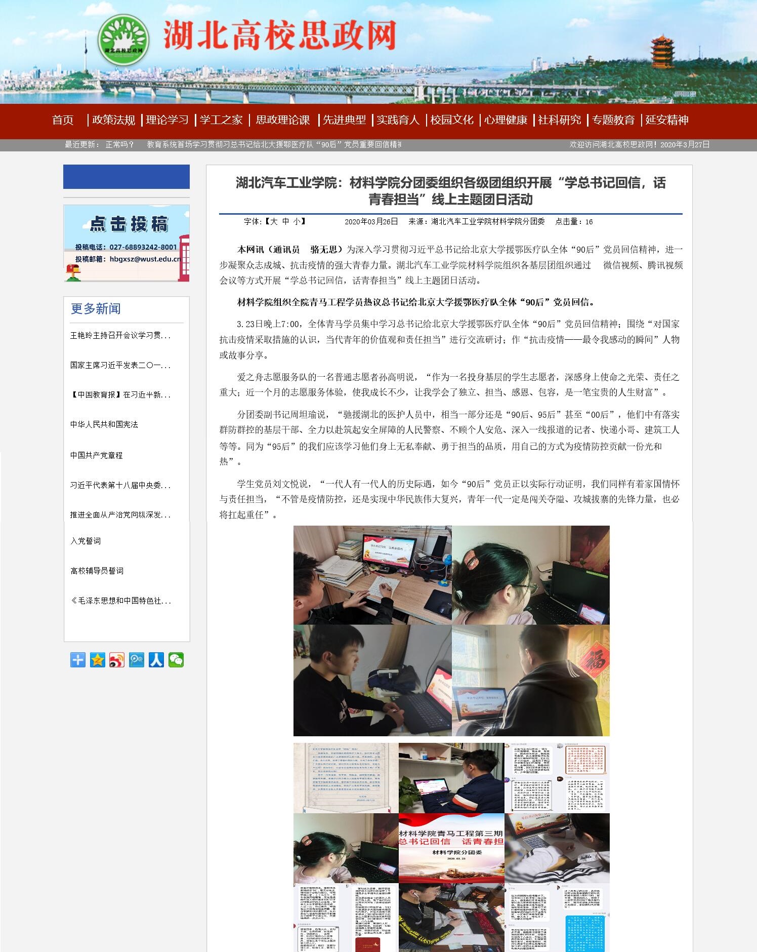 【湖北高校思政网】国产精品永久久久久久久久久|91精品无码国产在线观看一区|久久人爽爽人爽爽ąV无码自慰|最新无码国模国产在线|2020最新无码国产在线观看:材料学院分团委组织各级团组织开展“学总书记回信,话青春担当”线上主题团日活动