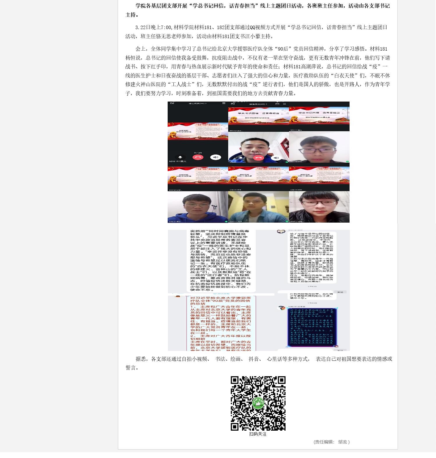 【湖北高校思政网】国产精品永久久久久久久久久|91精品无码国产在线观看一区|久久人爽爽人爽爽ąV无码自慰|最新无码国模国产在线|2020最新无码国产在线观看:材料学院分团委组织各级团组织开展“学总书记回信,话青春担当”线上主题团日活动-国产精品永久久久久久久久久|91精品无码国产在线观看一区|久久人爽爽人爽爽ąV无码自慰|最新无码国模国产在线|2020最新无码国产在线观看