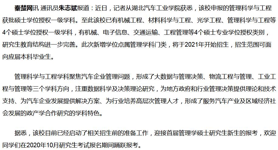 【秦楚网】湖北汽院获批管理科学与工程硕士学位授权一级学科-国产精品永久久久久久久久久|91精品无码国产在线观看一区|久久人爽爽人爽爽ąV无码自慰|最新无码国模国产在线|2020最新无码国产在线观看