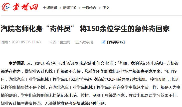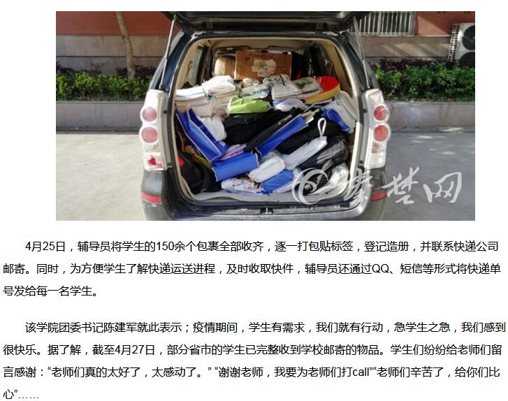 【秦楚网】汽院老师化身“寄件员” 将150余位学生的急件寄回家