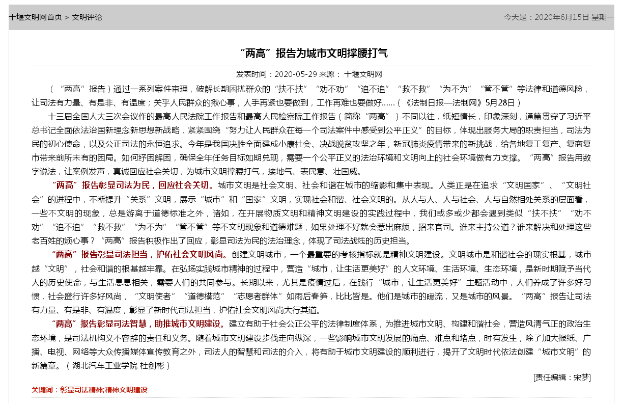 【十堰文明网】“两高”报告为城市文明撑腰打气