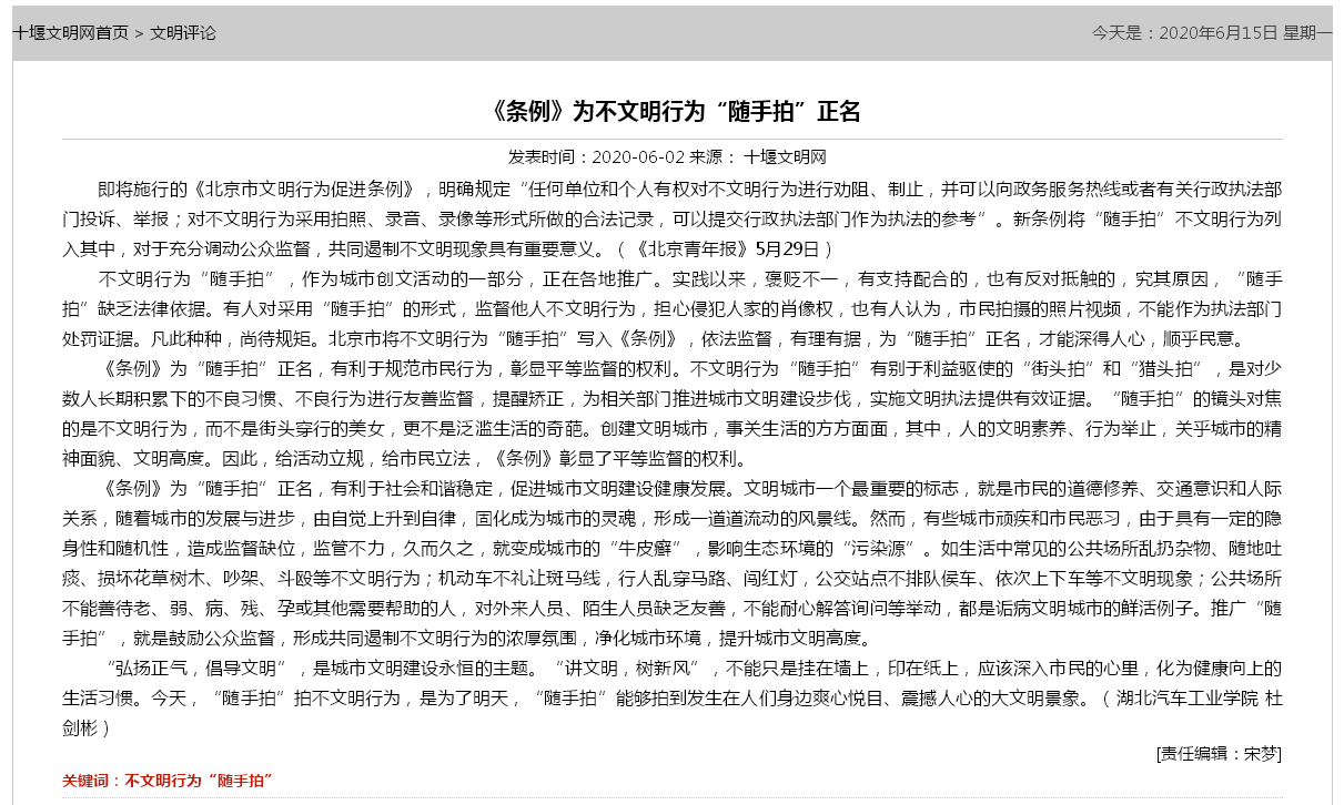 【十堰文明网】《条例》为不文明行为“随手拍”正名