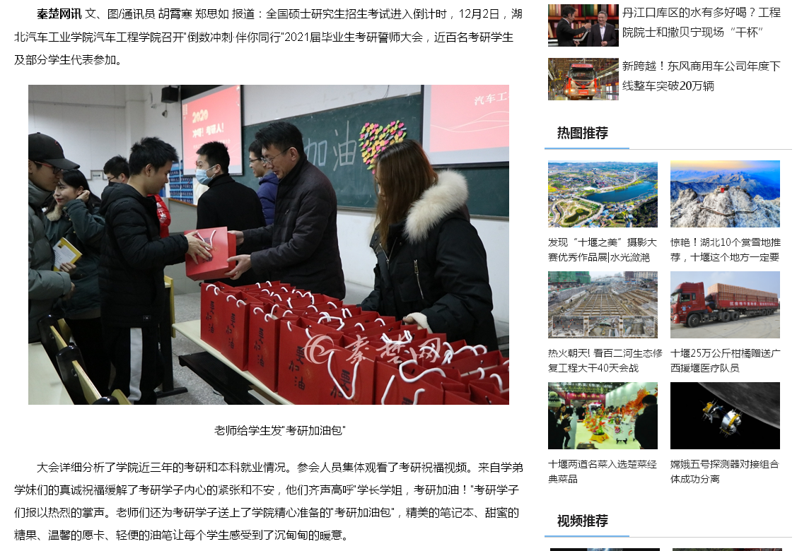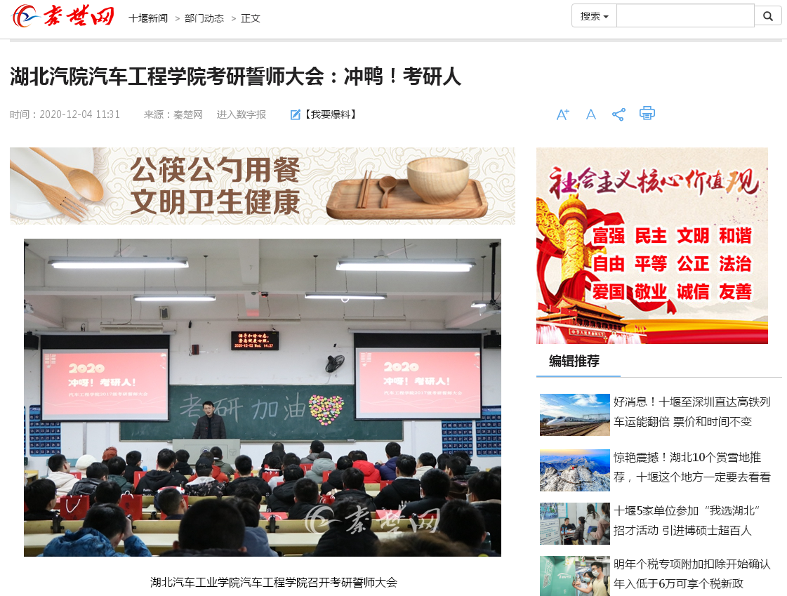 【秦楚网】湖北汽院汽车工程学院考研誓师大会:冲鸭!考研人