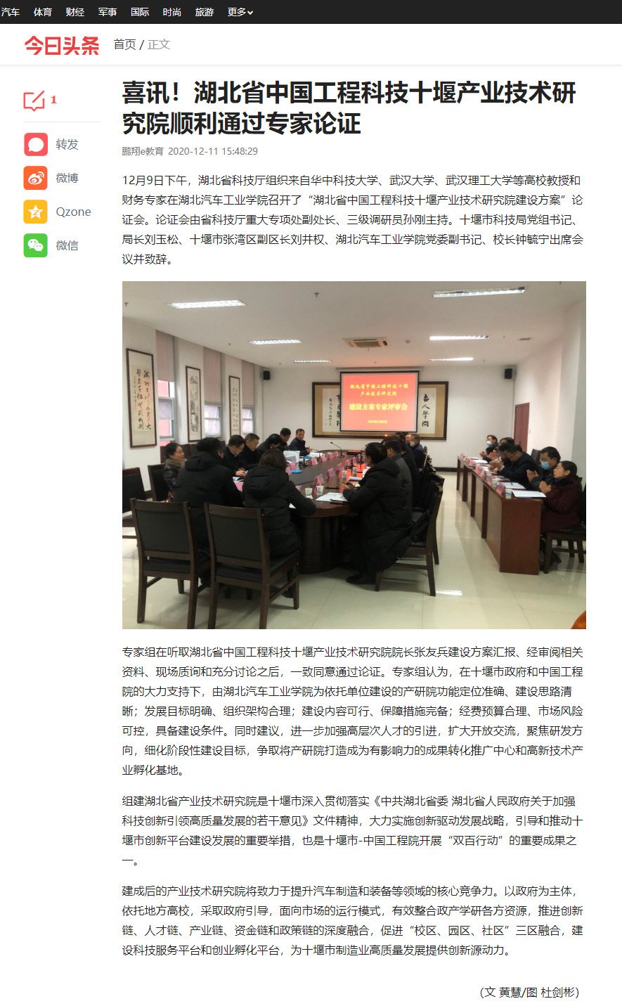【头条】喜讯!湖北省中国工程科技十堰产业技术研究院顺利通过专家论证