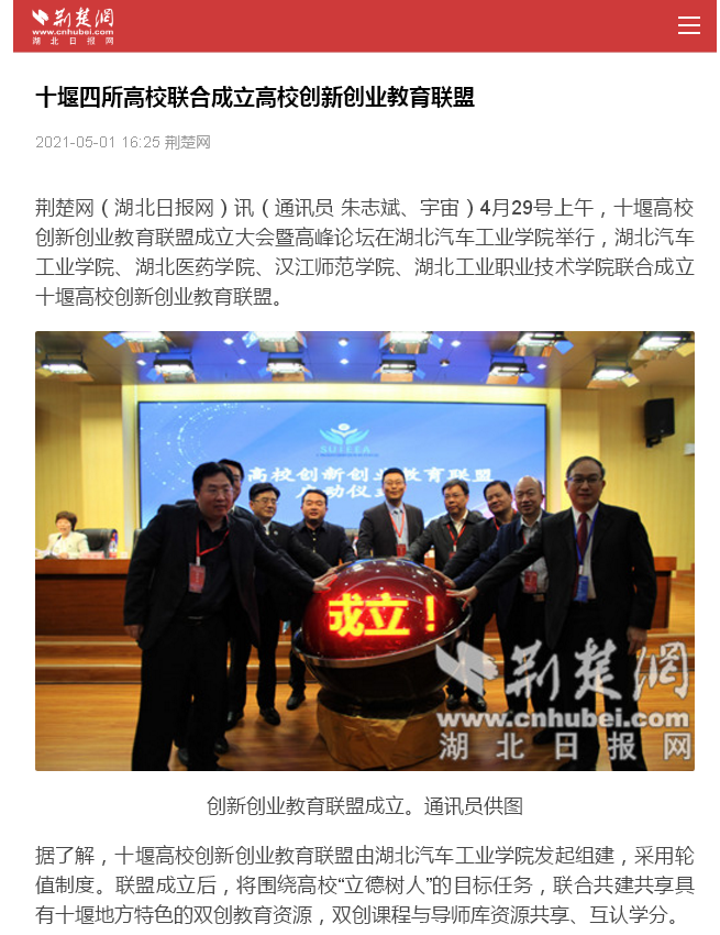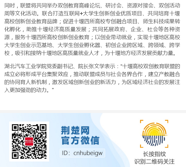 【荆楚网】十堰四所高校联合成立高校创新创业教育联盟
