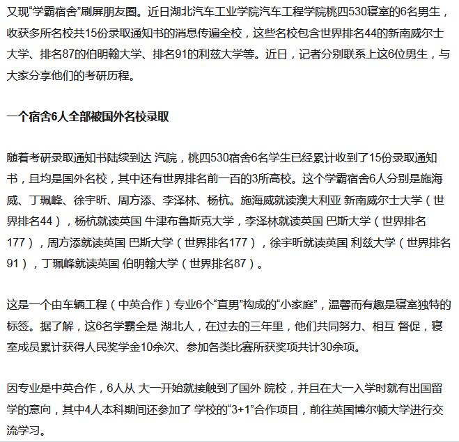 【秦楚网】十堰高校再现“学霸宿舍”!6名小鲜肉获国外名校15份offer