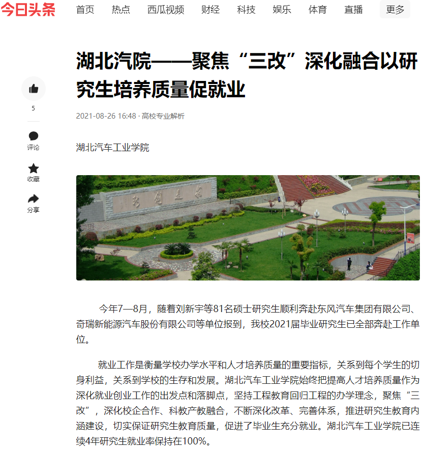 【今日头条】湖北汽院——聚焦“三改”深化融合以研究生培养质量促就业