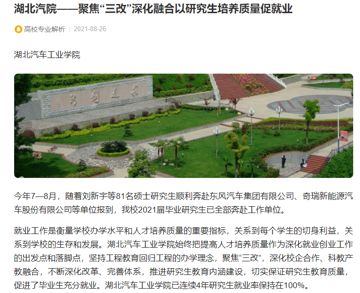 【腾讯内容开放平台】湖北汽院——聚焦“三改”深化融合以研究生培养质量促就业
