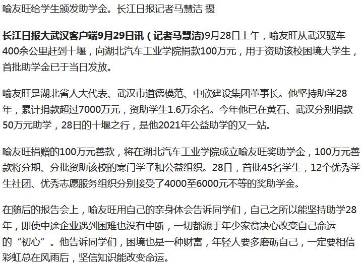 【长江日报】喻友旺向汽院捐款100万元助学-国产精品永久久久久久久久久|91精品无码国产在线观看一区|久久人爽爽人爽爽ąV无码自慰|最新无码国模国产在线|2020最新无码国产在线观看