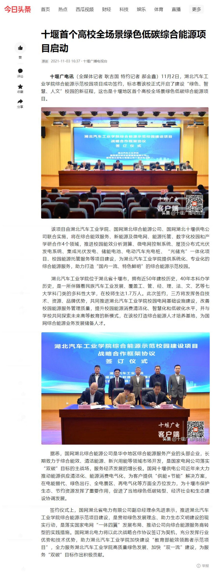 【十堰广电】十堰首个高校全场景绿色低碳综合能源项目启动