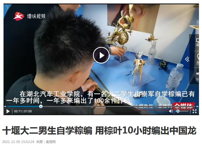 【秦楚网】十堰大二男生自学粽编 用棕叶10小时编出中国龙