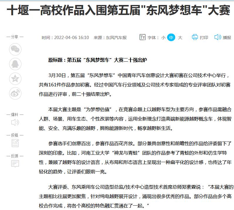 【秦楚网】十堰一高校作品入围第五届"东风梦想车"大赛