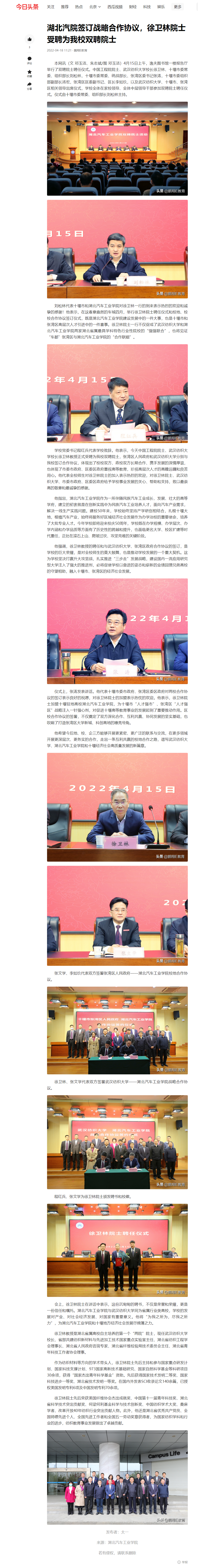 【今日头条】湖北汽院签订战略合作协议,徐卫林院士受聘为我校双聘院士