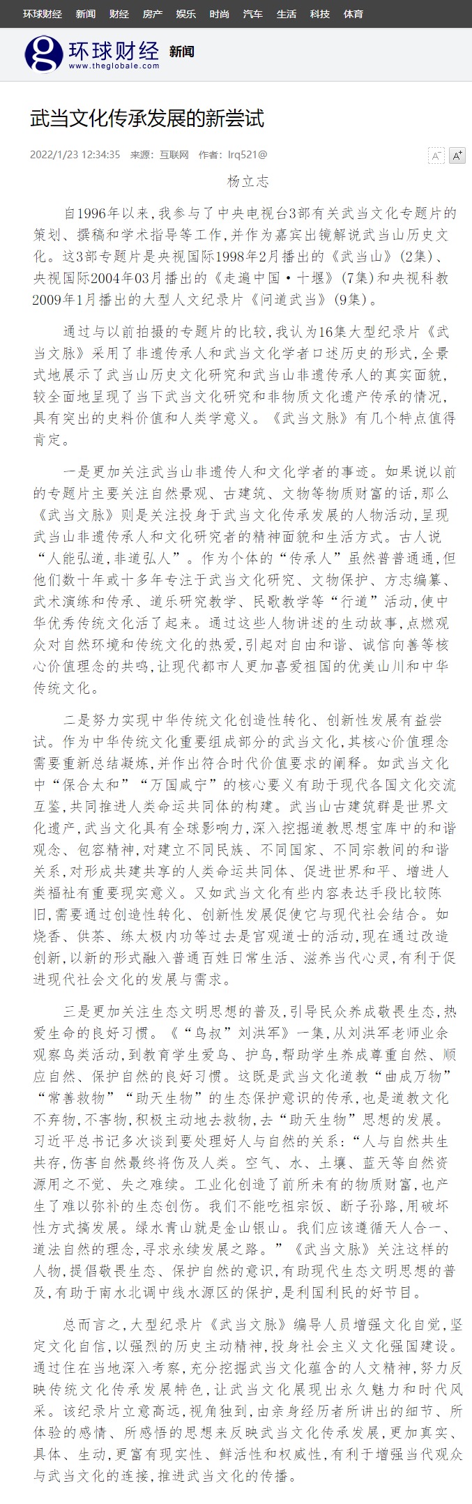 【环球财经】武当文化传承发展的新尝试