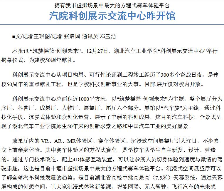 【十堰晚报】汽院科创展示交流中心昨开馆-国产精品永久久久久久久久久|91精品无码国产在线观看一区|久久人爽爽人爽爽ąV无码自慰|最新无码国模国产在线|2020最新无码国产在线观看