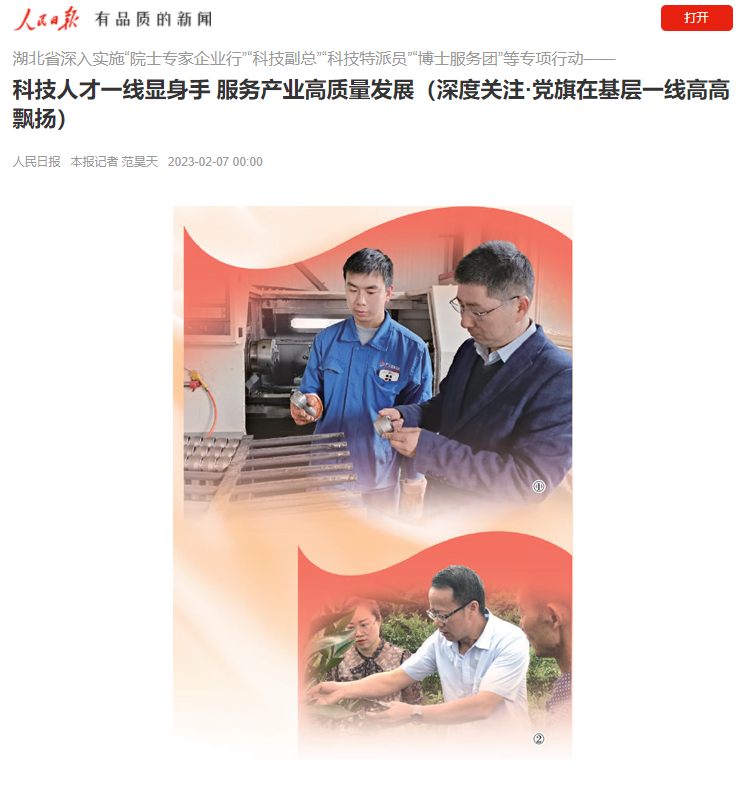 【人民日报】科技人才一线显身手 服务产业高质量发展(深度关注·党旗在基层一线高高飘扬)