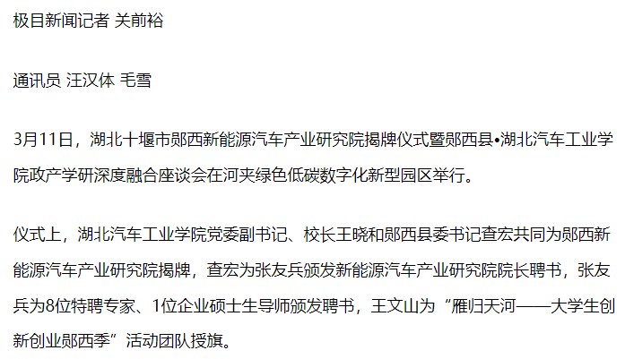 【荆楚网】十堰郧西县新能源汽车产业研究院成为产业发展“新引擎”