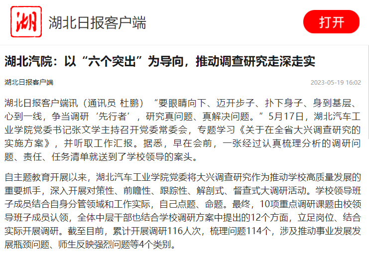 【湖北日报】湖北汽院:以“六个突出”为导向,推动调查研究走深走实