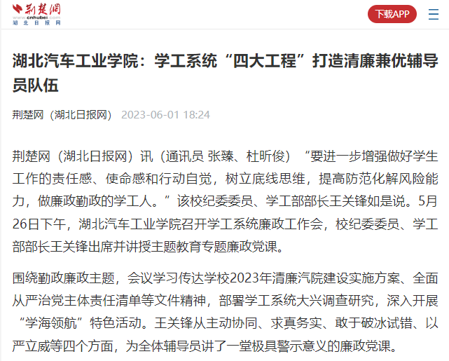 【荆楚网】学工系统“四大工程”打造清廉兼优辅导员队伍