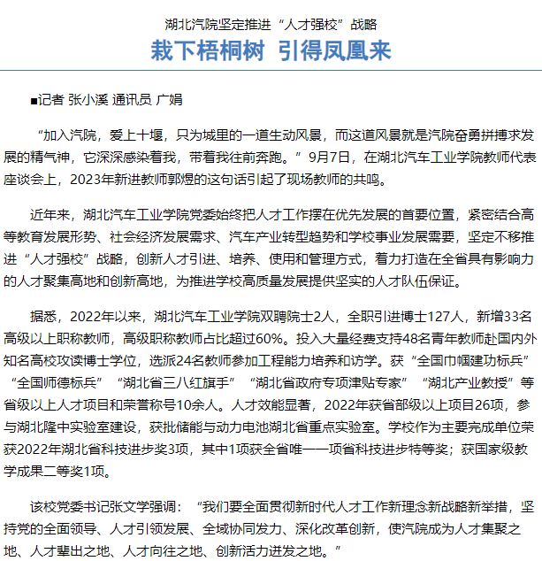 【十堰晚报】湖北汽院坚定推进“人才强校”战略 栽下梧桐树 引得凤凰来-国产精品永久久久久久久久久|91精品无码国产在线观看一区|久久人爽爽人爽爽ąV无码自慰|最新无码国模国产在线|2020最新无码国产在线观看