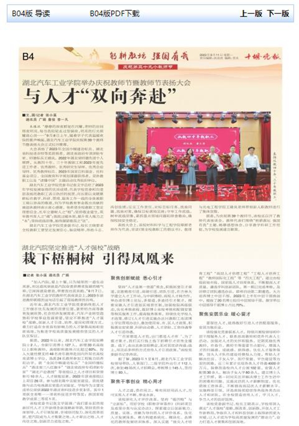 【十堰晚报】湖北汽院坚定推进“人才强校”战略 栽下梧桐树 引得凤凰来