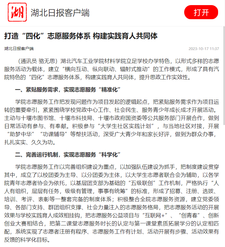 【湖北日报】打造“四化”志愿服务体系 构建实践育人共同体