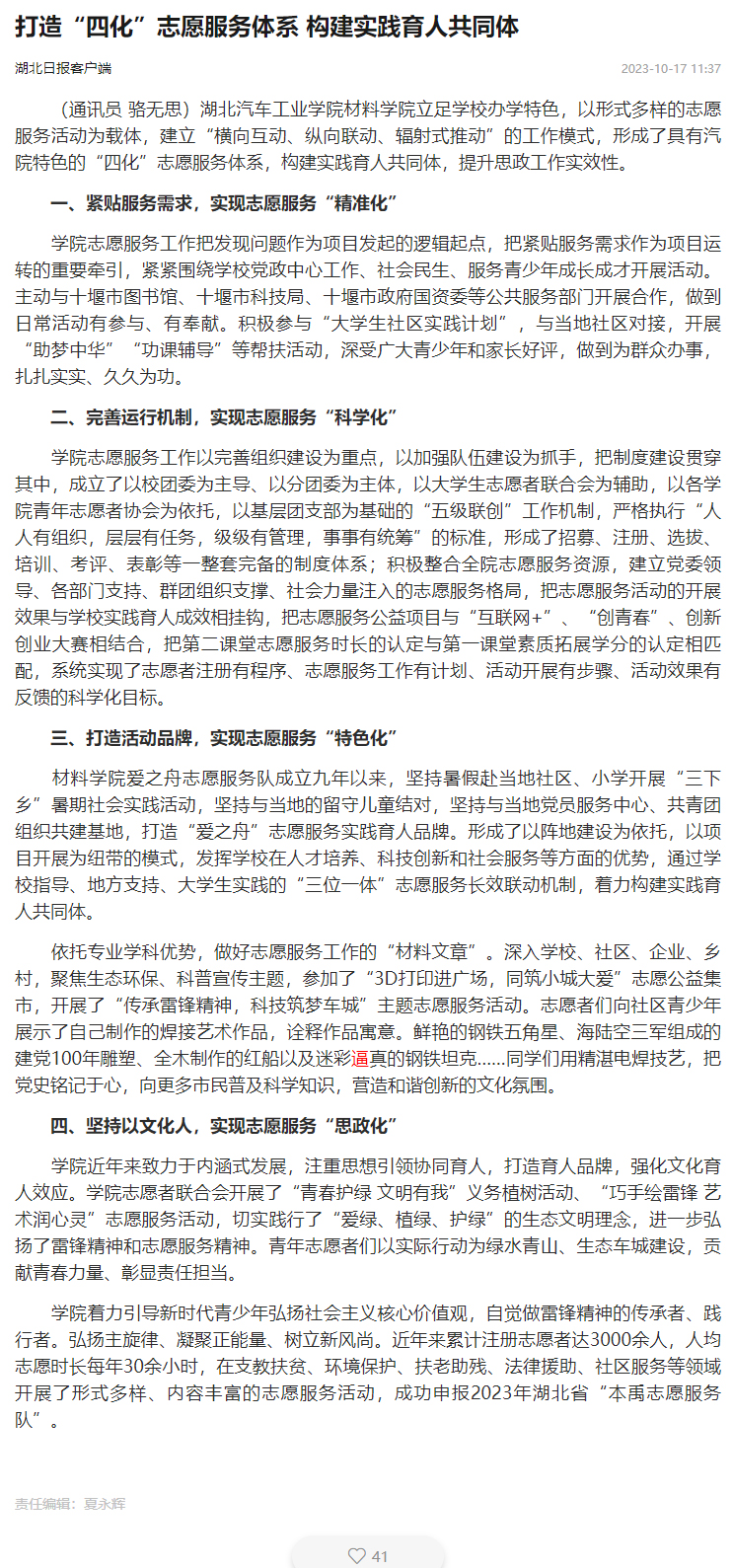 【湖北日报】打造“四化”志愿服务体系 构建实践育人共同体。