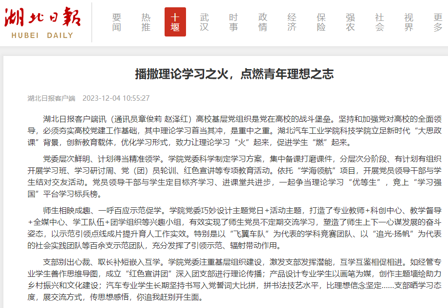 【湖北日报】播撒理论学习之火,点燃青年理想之志